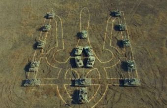 Дніпропетровські, львівські й миколаївські десантники сформували гігантський Тризуб із танків (відео)