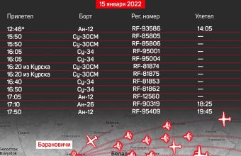 Усі вони прибули до Барановичів у проміжку між 15:50 – 16:50 (київський час). Достеменно відомо, що два Су-30СМ прямували з Курська (РФ). Примітно, що до прильоту сьогоднішніх винищувачів у Барановичах уже дислокувалися два Су-34 ВКС РФ.