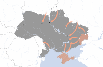 Згідно з одним з підходів, російські військові захоплять більшу частину української території на схід від Дніпра, де перебувають близько 50% українських збройних сил, серед них і найбільш боєздатні підрозділи.