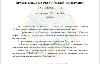 При створенні «організації» уряд рф посилається на закон «про безпеку об'єктів паливно-енергетичного комплексу», де зазначено, що підприємствам галузі «може бути надано право на заснування приватної охоронної організації». Розмір частки такого підприємства у статутному капіталі новоствореної «організації» не може бути меншим ніж 50%.