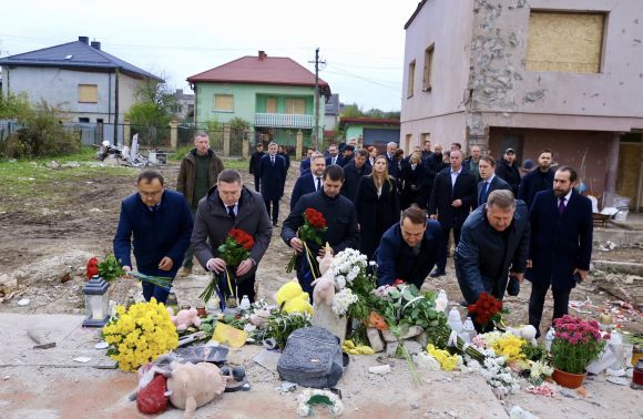 "Разом з ним, а також із заступником міністра закордонних справ України Олександром Міщенком відвідали місце підлого російського удару по цивільних у Лапаївці. Вшанували пам'ять невинних людей, життя яких забрав ворог. Ця втрата – відкрита рана Львівщини й усієї України", - написа він.