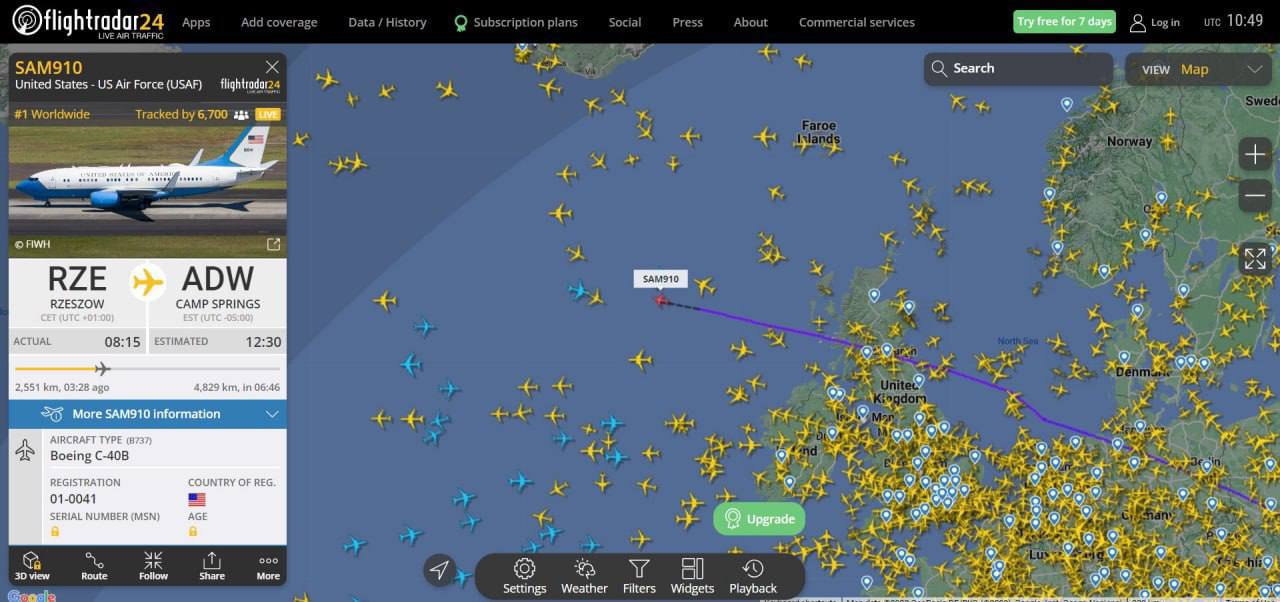 Рейс Special Air Force Mission SAM910 американських ВПС вилетів з польського Жешува.