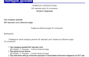 Львівська облрада оприлюднила порядок денний сесії