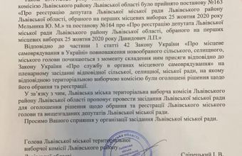 А також двох депутатів, зареєстрованих міською ТВК 25 листопада, наступного дня після проведення „ургентної“ сесії ЛМР, що не дочекалася офіційних результатів про обрання міським головою Андрія Садового.