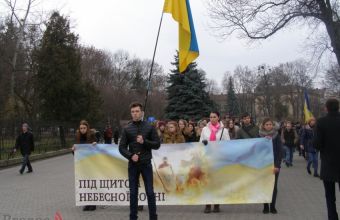 У Львові понад три тисячі студентів університету імені Франка разом із іншими львів’янами вшанували другу річницю розстрілів на Майдані мовчазною ходою «Під щитом Небесної сотні» і поділились дерев’яними шматочками символічного дерев’яного щита. Без жодних скандувань і політичних гасел.