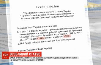На мові законодавця це прозвучало так: у статті 1 Закону України «Про особливий порядок місцевого самоврядування в окремих районах Донецької та Луганської областей» цифри «2020» замінити цифрами «2021». Уся робота. Закон набирає чинності з дня його опублікування. Проект Закону зареєстровано за №4467, нагадує DailyLviv.