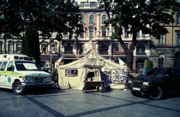 Збір речей незмінно проводится у наметі навпроти памятнику Тарасові Шевченка, або за нижче вказаним телефоном (під’їдемо) Усім, хто захочуть долучитися та допомогти, – телефони: 0973747955 Андрій, 0678459833 Сергій».