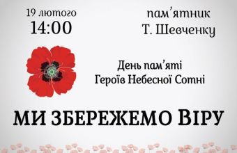 У четвер, 19 лютого, в рамках вшанування пам’яті борців за волю та гідність України запланована тиха хода «Ми збережемо віру», яка розпочнеться о 13.00. Під час ходи учнівська та студентська молодь організовано пройде від Львівських університетів до площі перед пам’ятником Т. Шевченку (пр. Свободи).