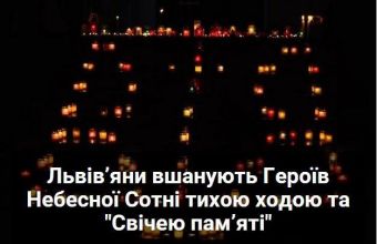 «Львів вшановує пам’ять Героїв Небесної Сотні. З цієї нагоди сьогодні, 20 лютого, о 19.00 год. на площі перед пам’ятником Тарасові Шевченку на проспекті Свободи відбудеться акція «Свіча пам’яті». Учасники дійства з допомогою лампадок зі свічками викладуть форму Тризуба.