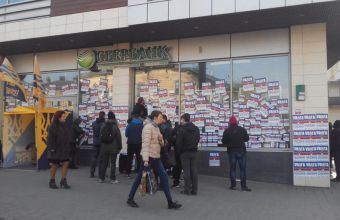 «На проспекті Чорновола – акція протесту проти «Сбербанка», – повідомили сьогодні, 25 квітня, на сторінці громадської організації «Варта 1» в інтернет-мережі «Facebook», де також опублікували фото з місця події.
