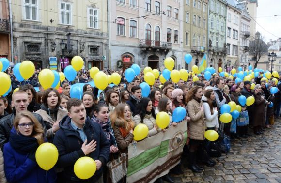 «Така акція вже стала традиційною для Львова і відбувалась четвертий рік поспіль. Виконання Державного Гімну України присвятили Надії Савченко. Сьогодні до акції долучилось більше тисячі осіб, зокрема, Герой України Ігор Юхновський, віце-ректор Українського католицького університету Мирослав Маринович, ректор Львівського національного університету імені Івана Франка Володимир Мельник, чемпіонка світу зі шахів Марія Музичук з родиною, міський голова Львова Андрій Садовий, який зазначив:
