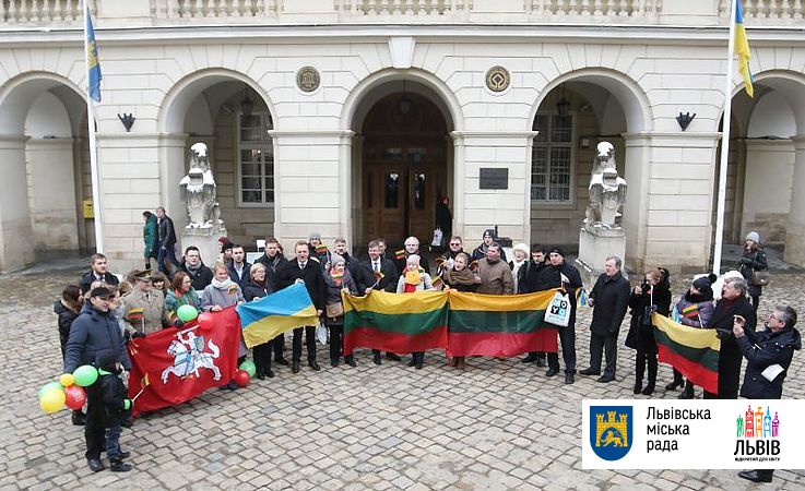 У п’ятницю, 16 лютого, біля Ратуші на площі Ринок у Львові відбулася громадська акція «Вітаю Литву!», присвячена 100-річчю з Дня відновлення Литовської держави.