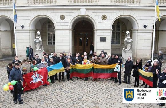 У п’ятницю, 16 лютого, біля Ратуші на площі Ринок у Львові відбулася громадська акція «Вітаю Литву!», присвячена 100-річчю з Дня відновлення Литовської держави.