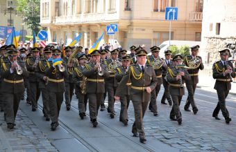 «Під супровід оркестру Національної академії сухопутних військ імені гетьмана Петра Сагайдачного, сформувавши одну колону, учасники заходу пройшлися вулицями міста до площі перед пам'ятником Тарасові Шевченку. Відтак, до пам'ятника Кобзареві поклали квіти та разом з хором виконали молитву за Україну «Боже великий, єдиний», – поінформували також в облдержадміністрації.