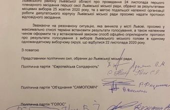 На годину раніше від повідомлення Андрія Садового з'явилося повідомлення від його опонентів: "Здоровий глузд взяв верх над емоціями. Щойно відбулось засідання за участю членів тимчасової президії Львівської міської ради, представників всіх фракцій та міського голови. Підготували спільне звернення до голови ТВК щодо оприлюднення протоколу першого пленарного засідання ЛМР та пришвидшення процедури оголошення результатів виборів міського голови...". Під цим зверренням підписи представників п'яти політичних партій, обраних до Львівської міської ради: "Європейської солідарності", "Свободи", "Варти", "Самопомочі", "Голосу".