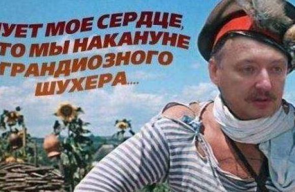 «Місцеві патріоти сьогодні повідомили, що вчора ввечері один з ватажків російських терористів на Донбасі, Гіркін-Стрєлков, у супроводі своїх наближених нукерів, перебував у одному з кафе на перехресті проспекту Гурова та бульвару Пушкіна у Донецьку, де пив горілку з офіцерами ЗС РФ. Його підручні оточили півквартала, нікого не підпускали до місця.