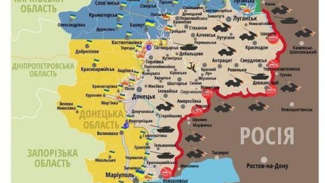 За інформацією Головного управління розвідки міністерства оборони України, як і раніше, на Донецькому напрямку противник продовжує тримати важке озброєння (міномети, танки, САУ та установки «Град») у прифронтовій смузі. Зокрема, точно відомо, що вищеназване озброєння розміщене у Горлівці, Макіївці, Донецьку та селищі Яковлівка, яка прилягає до Ясинуватської дорожньої розв’язки та Авдіївської промзони.