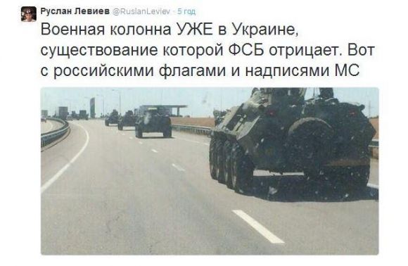«Близько 21.00 в Україну через селище Сєверний на кордоні з Російською Федерацією зайшла колона російської важкої техніки – всього близько 20 одиниць, більшість з якої – системи залпового вогню «Град». Рух колони буде через Суходільськ у район селища Новосвітлівка, яке зараз контролюється українськими військовими.