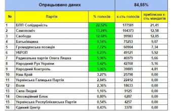 На Львівщині опрацьовано 84,55% бюлетенів