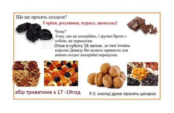 «Цього тижня, окрім традиційного збору допомоги у гіпермаркеті «Рукавичка» (м.Львів вул. Луганська 6) 18-19 липня з 10:00 до 18:00, збір проведуть в окремих магазинах області, а саме: