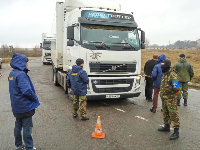 «У селі Гамаліївк на Львівщині, представники Кам'янка-Бузької районної організації ВО «Свобода» продовжують відслідковувати рух російських вантажівок. Активісти зупинили ще три вантажівки із російськими номерами. За словами свободівця Віталія Сприса, водії цих автомобілів викликають поліцію, не з'їжджаючи із узбіччя дороги».