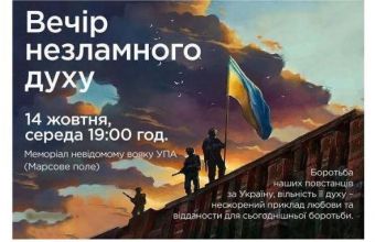 «У середу о 19:00 біля меморіалу Невідомому Вояку УПА на Марсовому полі на вулиці Мечнікова відбудеться вечір незламного духу «Львів – місто героїв». Керівник управління внутрішньої політики Львівської міської ради Євген Бойко зазначив із приводу Дня захисника України:
