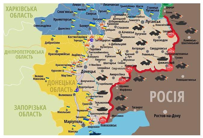 Зокрема, бойовики вели обстріли наших позицій біля Авдіївки, починаючи з танкового обстрілу о 05:50 ранку, і завершуючи прицільним вогнем зі 122-міліметрової самохідної артилерійської установки о 18:20. Протягом дня Авдіївка підпала під ворожий вогонь з 82 та 120-міліметрових мінометів, гранатометів, стрілецької зброї, і ще двічі бойовики стріляли з танків та один раз – з бойової машини піхоти.