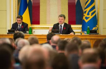 «Президент Петро Порошенко провів нараду з головами районних державних адміністрацій, на якій назвав першим пріоритетом для влади значне підвищення ефективності Збройних Сил. Глава держави повідомив, що останнім часом надходить багато тривожної інформації про чисельні спроби підірвати стабільність як ззовні, так і всередині країни.