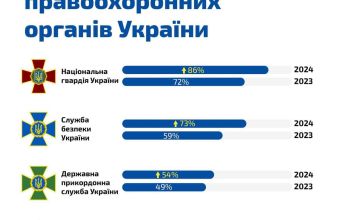 Згідно з опитуванням соціологічної групи "Рейтинг", проведеного на замовлення якоїсь Місії, пише DailyLviv.com, Національна гвардія України має найвищий рівень довіри серед правоохоронних органів. 86% респондентів висловили довіру НГУ, порівняно з 72% опитаних у 2023 році.