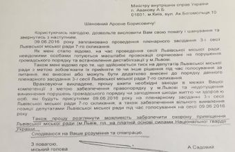 Народний депутат і радник міністра внутрішніх справ Антон Геращенко оприлюднив 14 червня на своїй сторінці в інтернет-мережі «Facebook» лист міського голови Львова Андрія Садового з проханням забезпечити 9 червня охорону будівлі ЛМР силами Національної гвардії України й повідомив: «На довершення історії питання про те, хто ж насправді попросив ввести Національну гвардію для забезпечення порядку у Львові, публікую звернення Андрія Садового до глави МВС Арсен Авакова, датоване 8 червня 2016 року. Все таємне рано чи пізно стає явним. А рукописи не горять. Про це треба пам'ятати, перед тим як давати інтерв'ю відомим інтернет-виданням».