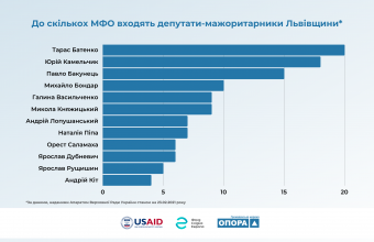 12 народних депутатів Львівщини, обрані в одномандатних виборчих округах впродовж поточної каденції закріпили за собою членство у 48 МФО.
