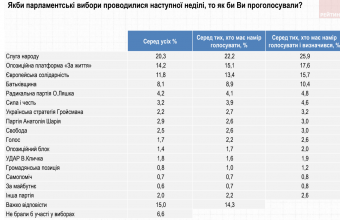 Якби парламентські вибори проводились наступної неділі, у рейтингу партій лідирувала б партія «Слуга народу», яку готову підтримати майже 26% серед тих, хто готовий голосувати і визначився з вибором.