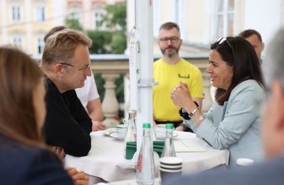 "Вітання з Львівської міської ради, де Посол Лариса Галадза сьогодні зустрічалась з мером міста Андрієм Садовим. Пані Посол висловила співчуття жертвам ракетного удару по Львову 6 липня. Вона також підтвердила непохитну підтримку з боку Канади, і відкритість до співпраці у Львові та в Україні. Наразі Канада підтримує розвиток місцевого бізнесу, особливо підприємств, заснованих жінками, та розвиває співпрацю з навчальними установами та волонтерськими організаціями у Львові".