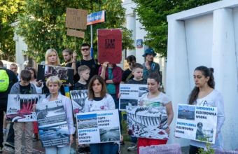 6 червня, у річницю прориву дамби на Каховській ГЕС, активісти відтворили події того трагічного дня перед посольством Росії у Варшаві.