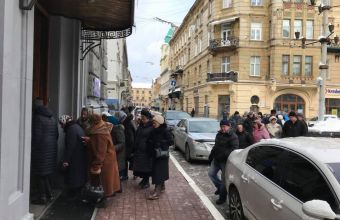 Представники УПЦ МП прийшли до будівлі Головного управління поліції у Львівській області на площі Генерала Григоренка.