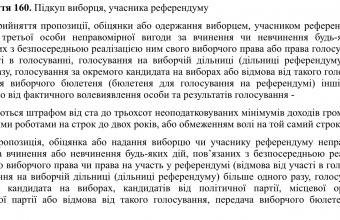 Нагадаємо, що уряд вніс навесні у Верховну Раду законопроект про підвищену відповідальність за порушення виборчого законодавства, у тому числі і за підкуп виборців. Документ з квітня цього року у парламенті ще не розглянули. А з практики застосування статті 160 Кримінального кодексу про підкуп виборців маємо "маленьку" карну статистику: у 2015 році було засуджено лише сім осіб, а в 2016-му – 14.