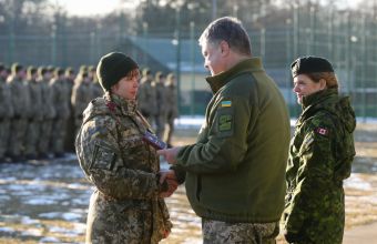 Під час відвідування Міжнародного центру миротворчості та безпеки, що на Львівщині, Президент Петро Порошенко вручив державні нагороди двадцятьом українським воїнам.