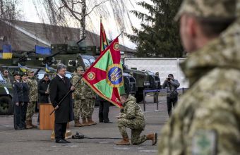 «Опісля Петро Порошенко вручив бойові прапори Львівському і Мостиському прикордонним загонам та Кінологічному навчальному центру. За понад півтора роки проведення антитерористичної операції ці підрозділи підготували та відправили для підсилення на схід України понад 3 тисячі прикордонників.