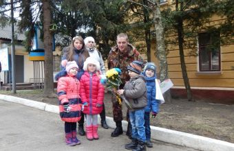 Діти принесли Роману квіти та малюнки. Чимало хороших слів цього дня звучало на адресу Романа Спринського. А полковник Олександр Корольов, командир військової частини, де проходить службу солдат-контрактник, за мужність та героїзм, проявлені під час виконання бойових завдань, нагородив військовослужбовця почесною грамотою.