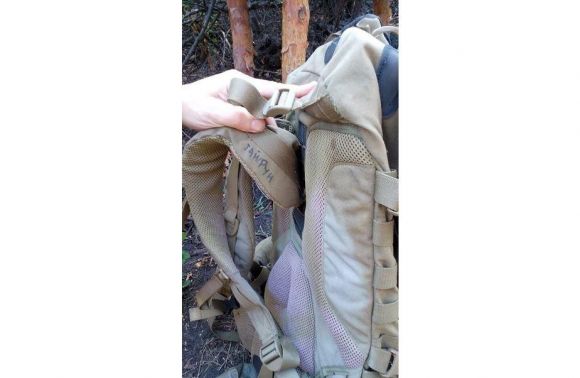 Один з російських спец призначенців був поранений та залишив на місті бою рюкзак. У рюкзаку знайдено приціл снайперський нічного бачення, однострій, печатки, балаклава, шнур альпініста, дві пачки набоїв (на фото).