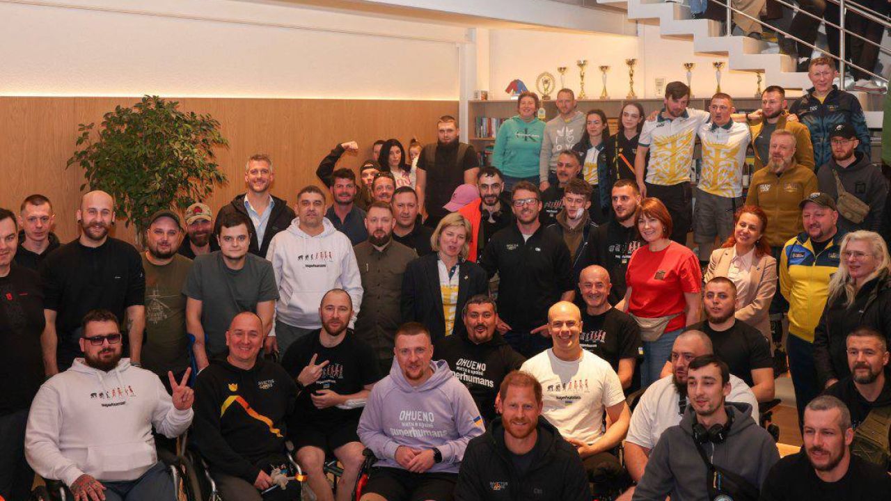 У супроводі чотирьох ветеранів принц Гаррі побував у львівській клініці Superhumans Center, де лікують поранених бійців, зокрема там займаються протезуванням.