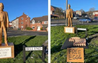 Сатирична статуя з’явилася в четвер у центрі села Белл Енд графства Вустершир після того, як місцеві жителі назвали російського тирана «Беллендом року» за його війну в Україні.