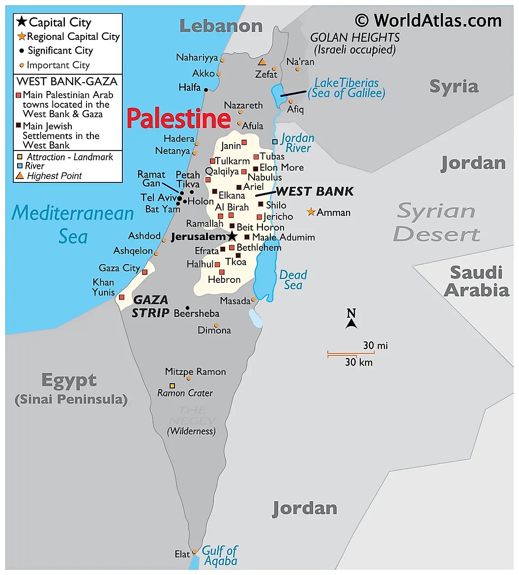 Коли сьогодні керівники держав, дипломати й ЗМІ говорять про одну «Палестину», вони обманюють. Немає єдиної «Палестини». Є два регіони, заселені палестинцями, та віддалені один від одного на 93 км – сектор Газа і Західний берег ріки Йордан. У них різна історія: до 1967 року сектор Газа була частиною Єгипту, а Західний берег ріки Йордан входив до складу Йорданії. Жителі останнього, значно більше зав'язані економічно на Ізраїль і схильні до його впливу. Тому вони сильно відрізняються від мешканців сектора Гази за рівнем життя, заробітком, освітою. Через близькість Єгипту і одвічні злидні у секторі Газа з 1970-х років значно більшим впливом користується ісламський чинник. Не випадково у 2007 році ХАМАС легко захопив там владу. На Західному березі ріки Йордан править світська націоналістична організація ФАТХ. Внаслідок усіх відмінностей сформувалася й різниця у менталітеті палестинців двох цих регіонів.