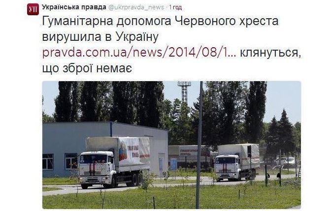 Прес-секретар російського президента Дмітрій Пєсков заявив у вівторок виданню британській газеті «Financial Times», що колона з гуманітарною допомогою РФ в'їде в Україну в точці, узгодженій із Києвом. Дослівно ж він запевнив: «Вона (місія. – Ред.) буде організована Міжнародним Комітетом Червоного Хреста, але складається з російської колони, яка в'їде на українську територію в пункті, щодо якого досягнуто згоди з українською стороною».