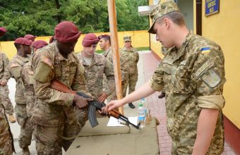 У понеділок, 20 липня, відразу після офіційної церемонії відкриття україно-американського командно-штабного навчання із залученням військ «Репід Трайдент-2015», на території військового містечка «Центральне» Міжнародного центру миротворчості та безпеки Академії Сухопутних військ імені Гетьмана Петра Сагайдачного, із військовослужбовцями багатонаціонального контингенту відбулися заняття із дотримання заходів безпеки.