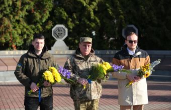 З цієї нагоди перший заступник начальника Львівської ОВА Андрій Годик (на світлині зліва) і перший заступник міського голови Львова Андрій Москаленко (на світлині справа) поклали квіти до Меморіалу воїнам Української Галицької Армії, що на Личаківському кладовищі у Львові. Хто в центрі - пресслужба у своєму повідомленні не зазначила.