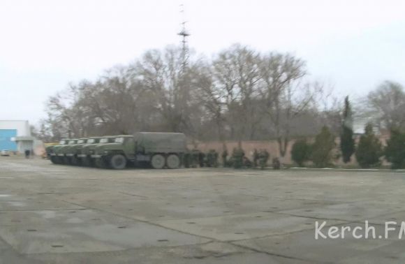 Як повідомляє в суботу інтернет-видання «Керчь.ФМ», поряд з будівлею морcкой вокзалу Керченської поромної переправи стоїть шість вантажівок «Урал» з російськими номерами. Поруч чергують кілька десятків військових людей в повній екіпіровці, з зброєю.