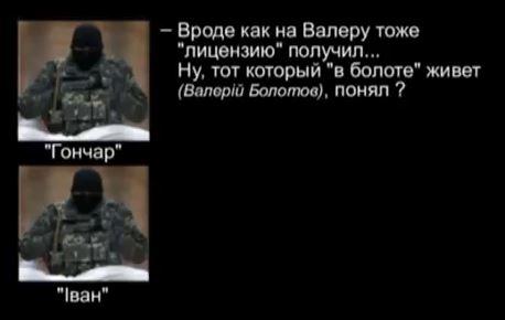 Його повідомлення передає з брифінгу кореспондент телеканалу «Еспресо.TV». Натомість на сайті інформаційно-аналітичного центру РНБО опубліковано відповідний запис розмови терористів, про яку розповів Андрій Лисенко. Зокрема у тньому йдеться про «ліцензію» з Москви на ліквідацію ватажка терористичного угруповання «Луганська народна республіка» Валерія Болотова.
