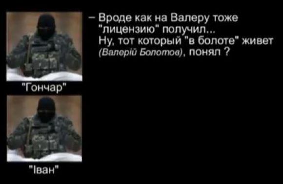 Його повідомлення передає з брифінгу кореспондент телеканалу «Еспресо.TV». Натомість на сайті інформаційно-аналітичного центру РНБО опубліковано відповідний запис розмови терористів, про яку розповів Андрій Лисенко. Зокрема у тньому йдеться про «ліцензію» з Москви на ліквідацію ватажка терористичного угруповання «Луганська народна республіка» Валерія Болотова.