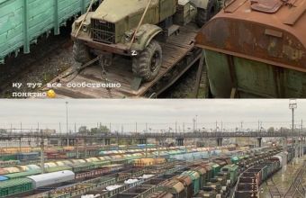 "Челябінський вокзал вчора. Моделі КрАЗ 60 років розробки, вже зі свастикою",- пише користувач мережі.